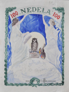 Akvarelis. Žurnāla NEDĒĻA 100 jubilejas numura vāka mets. Autors nezināms. Latvija 1920-30'ie gadi. 13.5x17.5 cm.