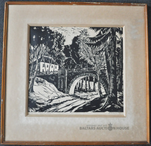 Broņislavs Biķelis. Linogriezums "Tukums-Durbes parks". Glezna 31x34 cm. Rāmis 51x52 cm. Rāmis bez stikla.