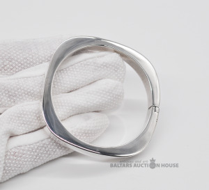 Sudraba aproce. Ārējais garums 23.5 cm. Platums 8 mm. Iekšējais diametrs 60 mm. Svars 27.1 grami.