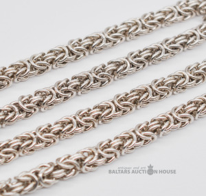 Sudraba ķēdīte. Roku darbs. Latvijas prove. Garums 43.5 cm. Platums 5 mm. Svars 35.7 grami.