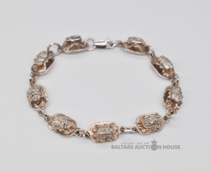 800 sudraba aproce ar skarabejiem. Latvijas prove. Garums 18 cm. Platums 8.5 mm. Svars 15.7 grami.