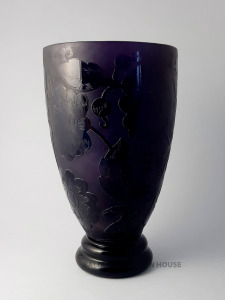 Skaista antīka ametista stikla vāze. Ar skābi gravēta. Augstums 20 cm.