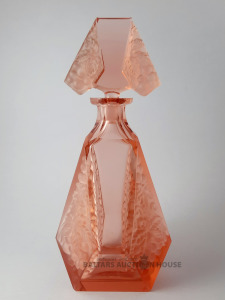Rozā stikla dekantere Art Deco stilā. Eiropa. Skaists priekšmets jūsu kolekcijai! Lieliskā stāvoklī.