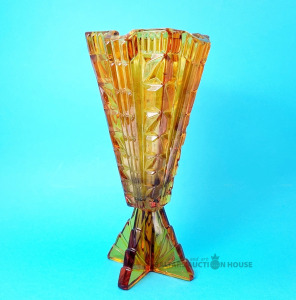 Dzintara stikla vāze. Art Deco stila stikla vāze, ražotājs Feigl & Morawetz, Libochovice. Stāvoklis redzams fotoattēlā.
