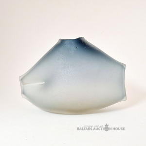 Skandināvu matēta pelēka stikla vāze ar marķējumiem, "Hysteria". Stāvoklis redzams fotoattēlā.