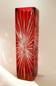 | Nosaukums | Ļoti skaista, stilīga kristāla rožu vāze no 1950. līdz 1959. gadam. Ražota Eiropā. Izmēri: augstums 29 cm, platums 8 cm, biezums 1 cm. Pulēta apakša. |