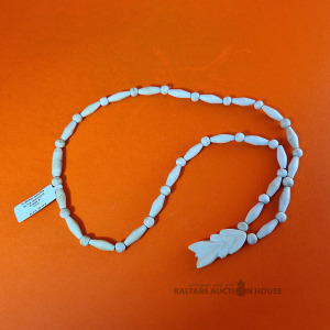 Kaklarota no ziloņkaula krāsas pērlītēm. Sertificēta proves biroja. Garums: 56 cm.
