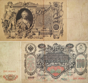 Krievijas impērija. 100 rubļi, 1910. Šipovs - Metz.