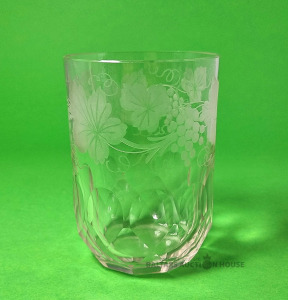 Antīka dzeramā glāze ar grebtu un iegravētu "Vīnogu ķekara" dekoru. Lieliskā stāvoklī. Augstums 10,5 cm. ANGLIJA.