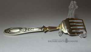 | Nosaukums | Sudraba zivju dakšiņa, 84. prove, (800)Kopējais svars 31,5 grami, 20. gadsimta sākums, Krievijas impērija, garums 15,5 cm, roktura garums 8 cm. Stāvok |