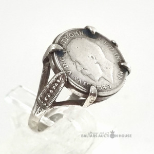 Antīks 1918. gada trīspensu gredzens sudraba ietvarā.