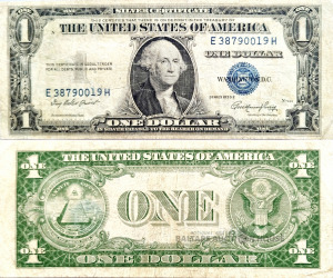 1935. gada 1 dolāra sudraba sertifikāts. E 38790019 H Stāvoklis atbilst fotoattēlam.
