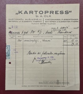 Rēķins. Kartonažu, mušuķērēju, bateriju un elementu fabrika "Kartopress".