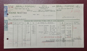 Rēķins. Metāltirdzn. A/S " Brāļi Popovi".