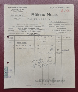 Rēķins. Ķīmiskā fabrika "Chimex", 1935g.