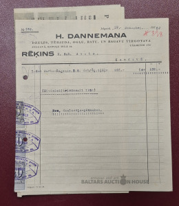Rēķins. Dzelzs, tērauda, ogļu, ratu un ragavu tirgotava Jelgavā, 1938g.