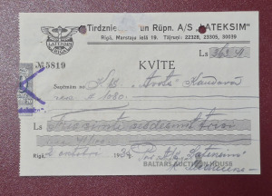 Kvīte. Tirdzniecības un Rūpniecības A/D "Lateksim", 1935g.