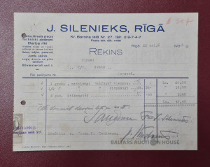 Rēķins. Dzelzs un tērauda preces "J. Silenieks", Rīgā, 1936g.