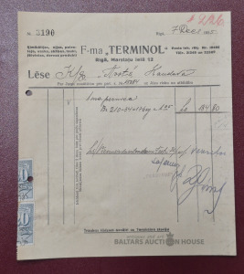 Lēse. Ķimikālijas, eļļas, petrolejas, vasks, skābes produkti F-ma " Terminol", 1935g.