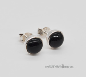 Sudraba/Oniksa auskari. Svars 2.7 grami.