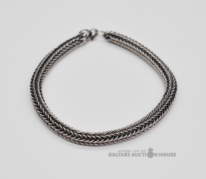 Sudraba aproce. Latvijas prove. Garums 21 cm. Platums 5.5 mm. Svars 17.6 grami.
