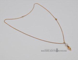 Apzeltīta sudraba kaklarota ar piekariņu. Garums 52.5 cm. Svars 4.4 grami.