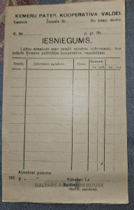 Ķemeri. Pater.kooperatīva valdei. Kvīts.