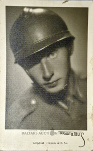 Karavīrs ar Adriana ķiveri.Jelgava.Stalina iela.1930-1940.gadi.