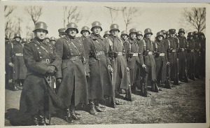 Fotogrāfija ar karavīru grupu ķiverēs, Latvijas armija. 1930.–40. gadi.