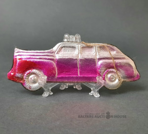 Kartona papīra padomju Ziemassvētku eglītes rotaļlieta PSRS automašīna ZIS un lācis.