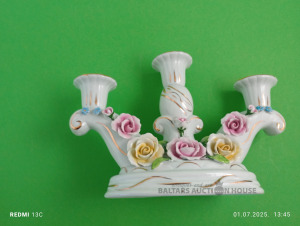 Vintāžas porcelāna trīsroku svečturis ar klasisku ziedu dekoru, Vācija, Vintāžas porcelāna trīszaru svečturis ar klasisku ziedu dekoru, Vācija