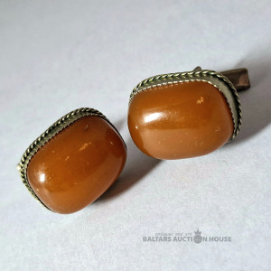 Dzintara aproču pogas. Latvija. Kopējais svars: 12,75 grami. Metāls.