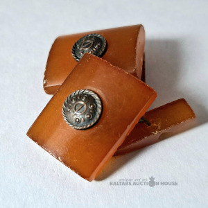 Aproču pogas ar dzintaru. Latvija. Kopējais svars 5,2 grami. Metāls.