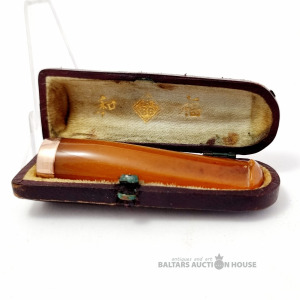 Iemutnis kastītē, 9 karātu zelts, 375. prove, kopējais svars 9 grami. Garums 6,5 cm.