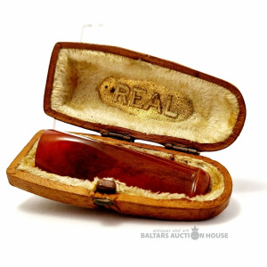 Mutes uzgalis futrālī. Kopējais svars 5,4 g. Izstrādājuma izmērs 5 cm. Presēts dzintars. Stāvoklis redzams fotoattēlā.