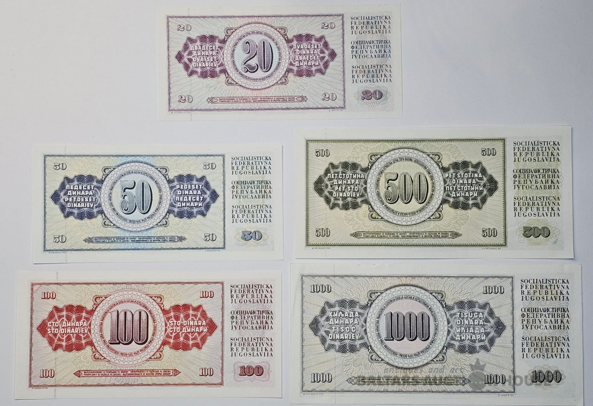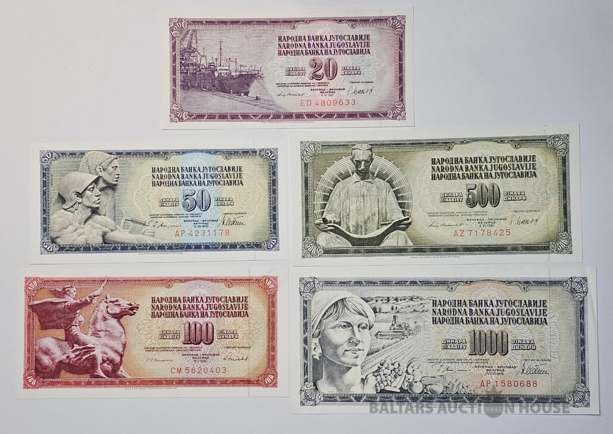 Banknotes, Jugoslavija/Yugoslavia, 20, 50, 100, 500, 1000 Dinari 1978/1981, UNC