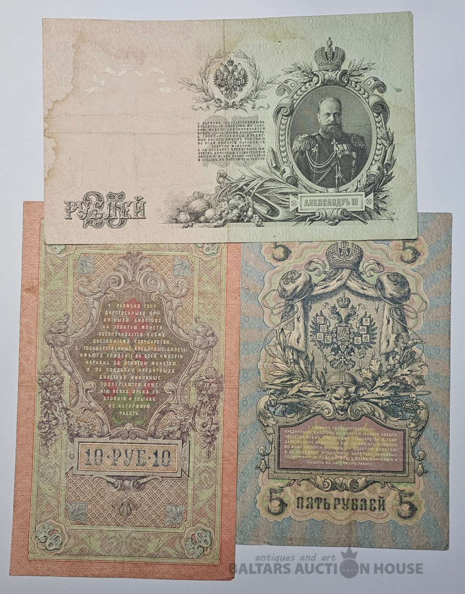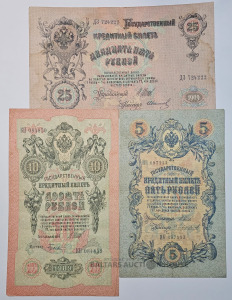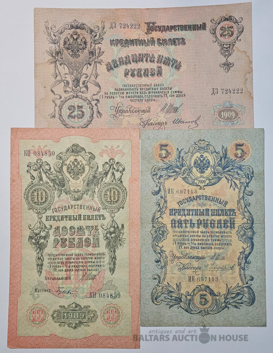 Krievija/Russia, 5, 10, 25 Rubļi 1909, VF-aXF