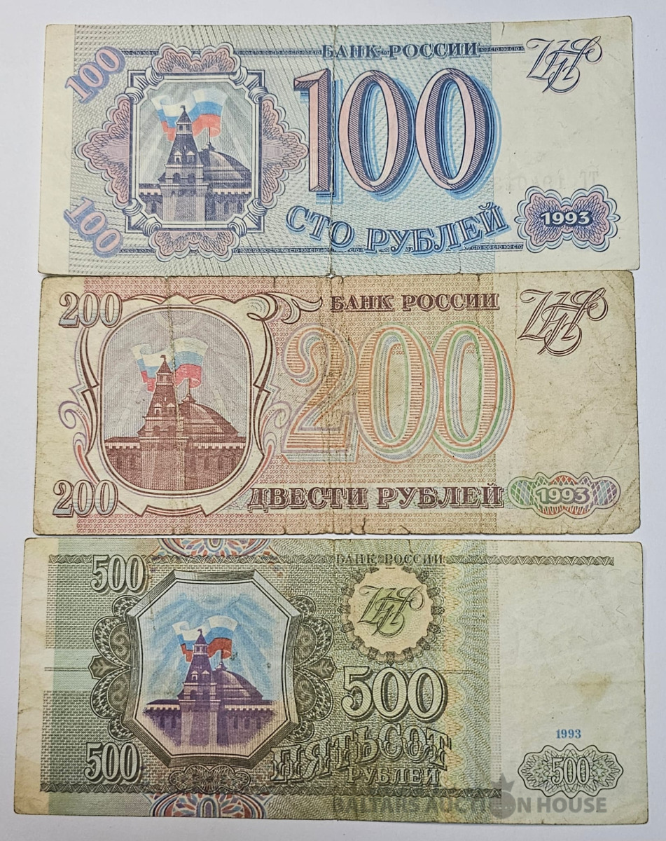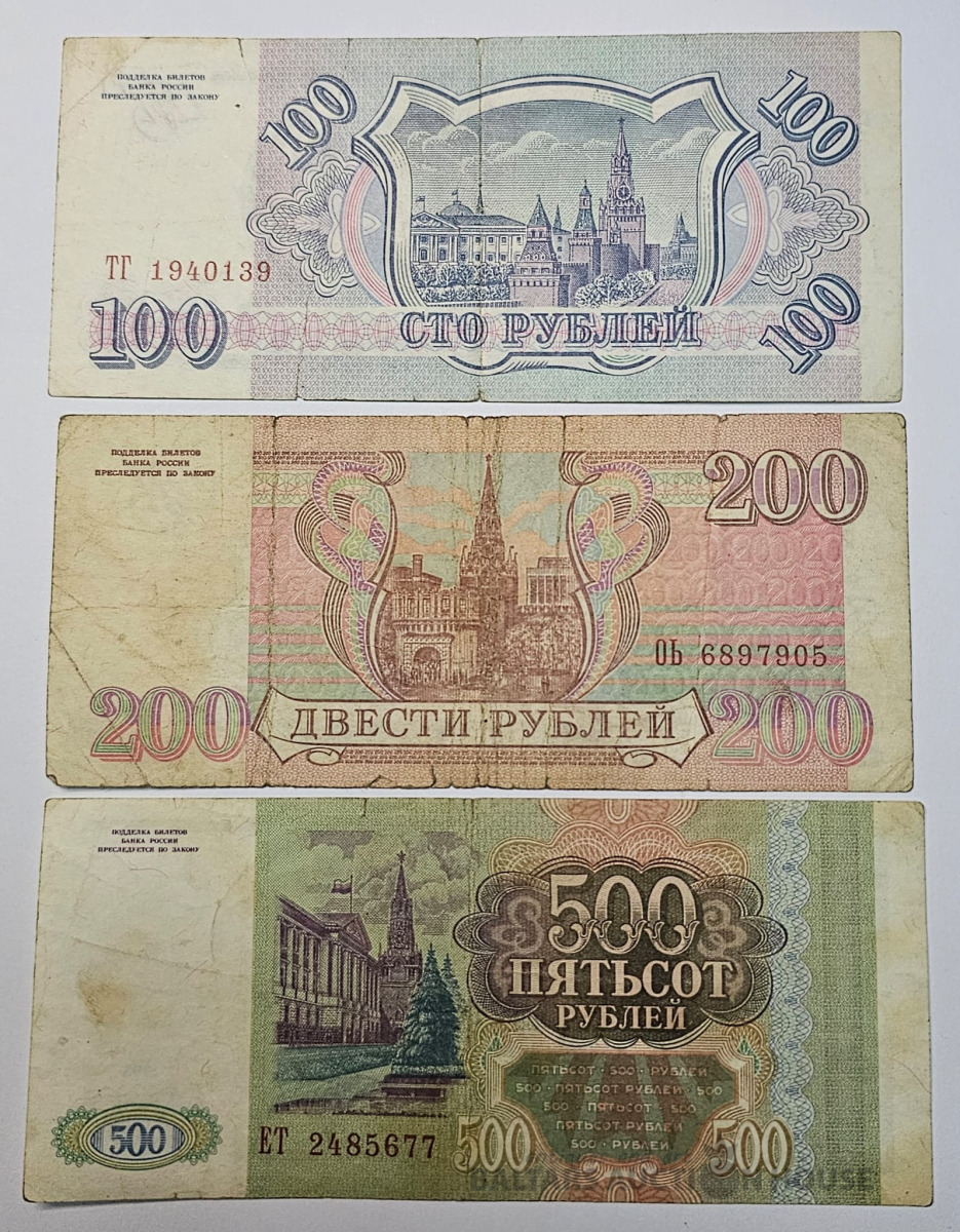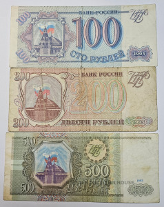 Banknote, Krievija, 100, 200, 500 rubļi, 1993, VF-VF+