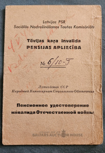 Tēvijas kara invlīda apliecība.