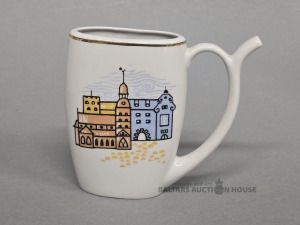 Krūze, Porcelāna ūdens krūze "Rīga" 20.gs. otrā puse. Rīgas porcelāna rūpnīca. Porcelāns, zeltījums. 11.8x13.8 cm