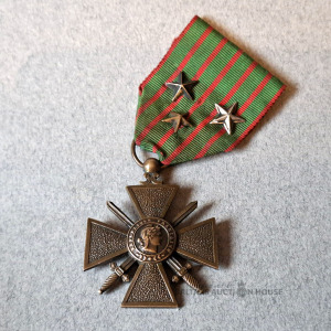 Francijas Kara krusts (Croix de guerre) 1914–1917 ar 2 bronzas zvaigznēm un 1 sudraba zvaigzni lentē.