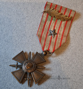 | Nosaukums | Francijas kara kronis (Croix de guerre) 1914–1915 ar bronzas kroni. Un palmas zars. Stāvoklis atbilst fotoattēlam. Zaram trūkst vienas stīgas. |
