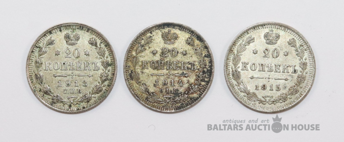 Sudraba monētas - 20 kapeikas. 1913., 1914., 1915. g.