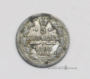 Sudraba monēta - 5 kapeikas. 1893. g.