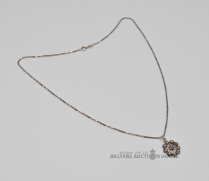Sudraba ķēdīte ar piekariņu. Garums 42.5 cm. Svars 4.2 grami.