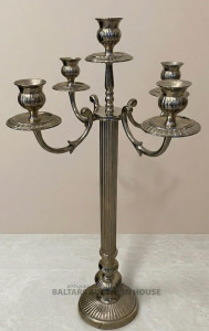 Piecu zaru kandelabrs ar rievotu kolonnas kāju. h=60 cm