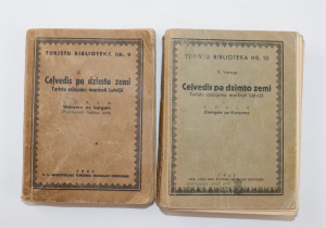 Tūristu bibliotēka Nr. 9. un 10. CEĻVEDIS PA DZIMTO ZEMI, 1. daļa VIDZEME UN LATGALE, 1937. g. 2. daļa ZEMGALE UN KURZEME, 1939. g. Ar kartēm.