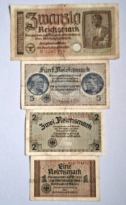 | Nosaukums | 1 x 20,5,2,1, reihsmarkas, ko izdeva Reihskreditkassenschein (Reiha kredītbankas) izmantošanai okupētajās teritorijās Otrā pasaules kara laikā (1940–1 |