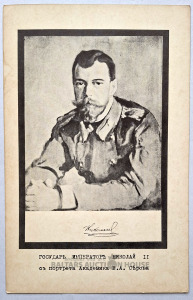Antīka sēru kartīte. 22 cm x 13,5 cm. Attēlā attēlots Nikolajs II, pēdējais Krievijas impērijas imperators. Portrets: Attēls ir balstīts uz akadēmiķa Valentīna Serova portretu. Valdīšanas laiks: Nikolajs II valdīja no 1894. gada līdz savai atteikšanās no troņa 1917. gada 15. martā. Ģimene: Viņš bija Aleksandra III un imperatores Marijas Feodorovnas dēls, precējies ar Hesenes princesi Alisi (Aleksandru Feodorovnu). Liktenis: 1918. gada jūlijā Nikolajs II un visa viņa ģimene tika sodīti ar nāvi Jekaterinburgā.