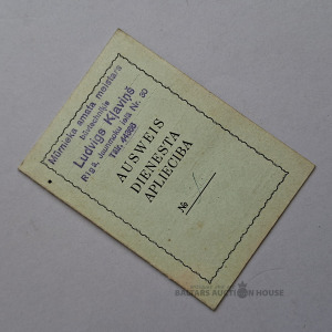 | Nosaukums | "Apliecība" / "Nodarbinātības karte" (apliecība / dienesta karte). Īpašnieks: Ludvigs Kļaviņš, mūrnieks meistars un būvtehniķis. |